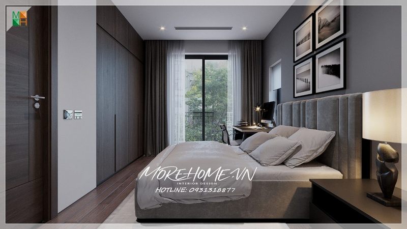 Tủ quần áo âm tường có màu nâu trầm kịch trần tối giúp tối ưu diện tích và tạo ra không gian sự thông thoáng, gọn gàng và tiện nghi.